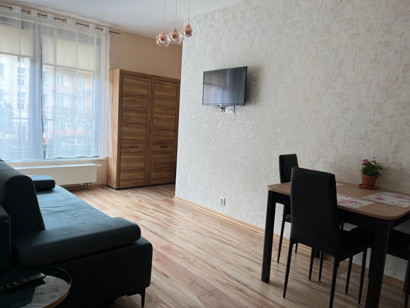 Apartament z 1 sypialnią. Featuring a private entrance, this apartment comprises 1 living room, 1 separate bedroom and 1 bathroom with a shower and a hairdryer. The well-equipped kitchenette features a stovetop, a refrigerator, kitchenware and a microwave. This apartment has a tea and coffee maker, a dining area, a flat-screen TV and a balcony. The unit offers 2 beds. Apartament - 4 osobowy. Powierzchnia pokoju ok.: 36 mkw. ;
