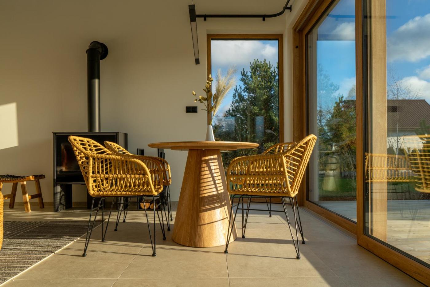 Willa z 2 sypialniami. This villas standout features are the hot tub, sauna and fireplace. Featuring a private entrance, this air-conditioned villa is comprised of 1 living room, 2 separate bedrooms and 2 bathrooms with a shower and a hairdryer. Guests can make meals in the kitchen that is fitted with a stovetop, a refrigerator, a dishwasher and kitchenware. The villa features a washing machine, a coffee machine, a seating area as well as a terrace with garden views. The unit offers 4 beds. Willa - 6 osobowy. Powierzchnia pokoju ok.: 70 mkw. ;