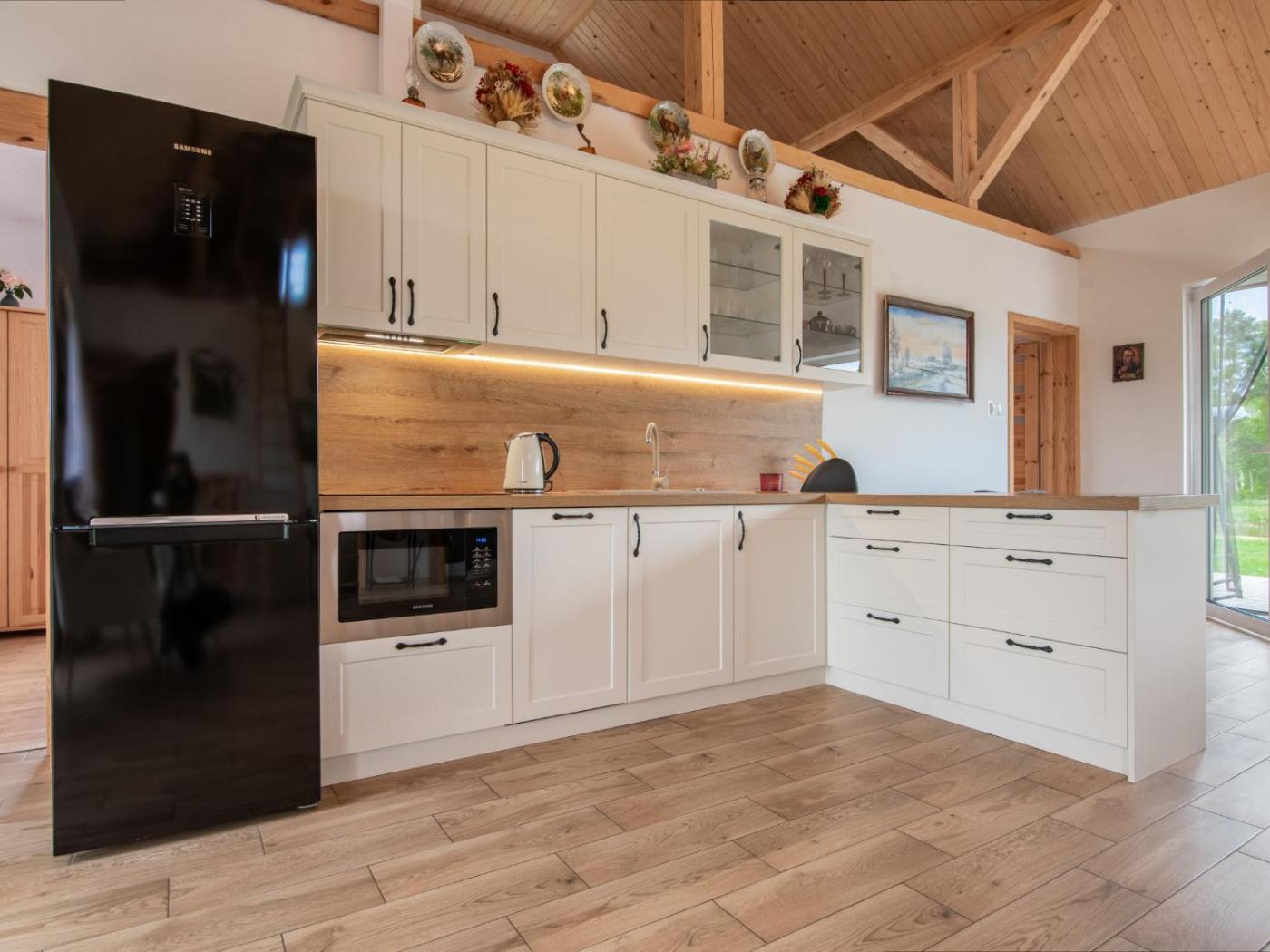 Dom wakacyjny. This holiday homes special feature is the fireplace. This holiday home consists of 1 living room, 4 separate bedrooms and 1 bathroom with a shower. The fully equipped kitchen features a stovetop, a refrigerator, a dishwasher and kitchenware. Featuring a terrace with river views, this holiday home also provides a dining area and a flat-screen TV. The unit offers 7 beds. Dom wakacyjny - 8 osobowy. Powierzchnia pokoju ok.: 100 mkw.