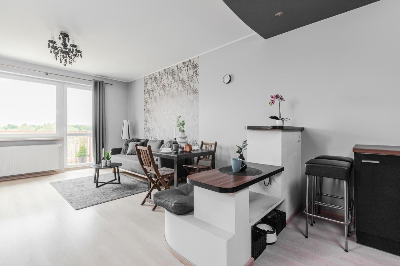Apartament z 1 sypialnią. This apartment comes with 1 living room, 1 separate bedroom and 1 bathroom with a bath and free toiletries. Meals can be prepared in the kitchen, which features a stovetop, a refrigerator, kitchenware and an oven. This apartment has a washing machine, a tea and coffee maker, a flat-screen TV and a balcony. The unit has 3 beds. Apartament - 4 osobowy. Powierzchnia pokoju ok.: 54 mkw.